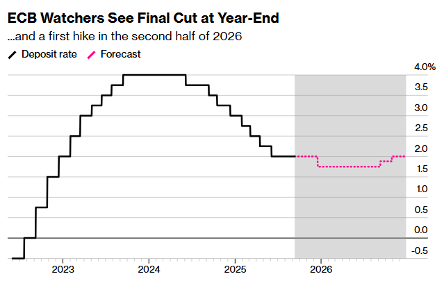 据知情人士透露,欧洲央行官员们越来越坚信他们能够在 9 月维持利率不变。这些知情人士认为,欧盟与美国之间的贸易协议不会引发重大的经济担忧。这些人士表示,由于上个月利率维持在 2%不变,经济增长和通胀情况与欧洲央行 6 月份的预期基本相符。该预测认为,通胀压力将在 2026 年有所下降,然后在 2027 年再次达到 2%的目标水平。